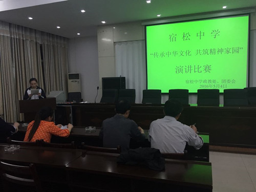 為了促進“傳承中華文化共筑精神家園”讀書教育活動深入開展,5月4日晚,宿松中學(xué)在辦公樓5樓會議室舉行了以“傳承中華文化,共筑精神家園”為主題的演講比賽。本次比賽由學(xué)校團委組織,來自高一、高二年級共42名學(xué)生分年級組參加了比賽。比賽現(xiàn)場,選手們各展身手,結(jié)合自身實際,用豐富的事例,動人的語言,適當?shù)膭幼鳎槍θ绾蝹鞒兄腥A文化闡明了各自的觀點,精彩的演講博得現(xiàn)場同學(xué)的陣陣掌聲,也贏得了評委老師們的贊賞。