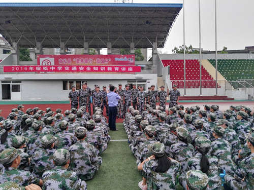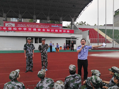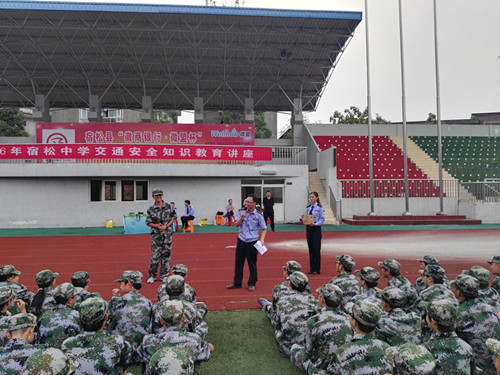 9月7日下午,艷陽高照,和風習習。宿松中學邀請交警大隊二中隊警官來校為學生開展交通安全知識專題講座。