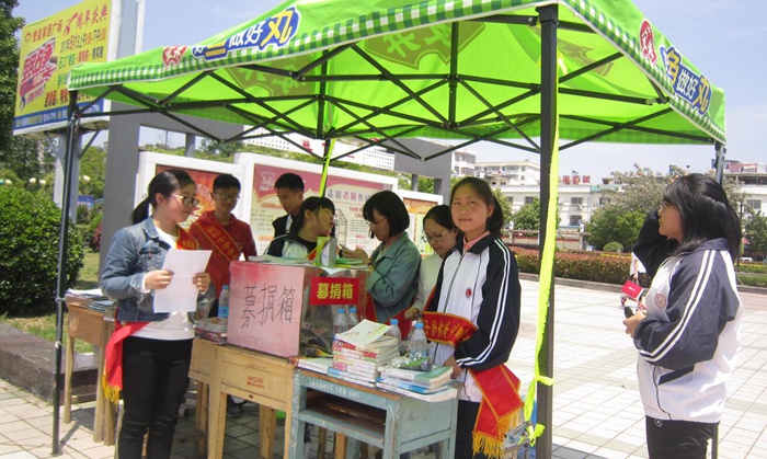 學生志愿者為重患學生發(fā)起愛心募捐活動