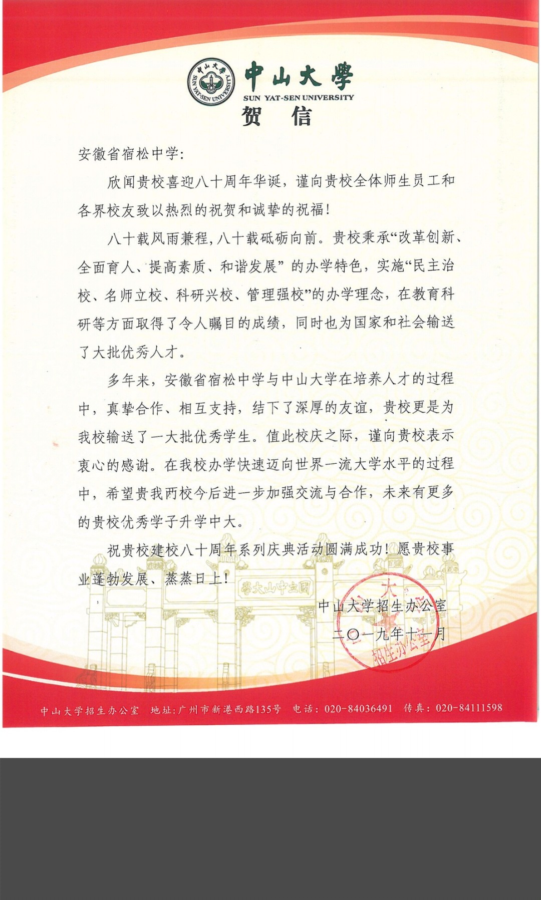 中山大學賀信