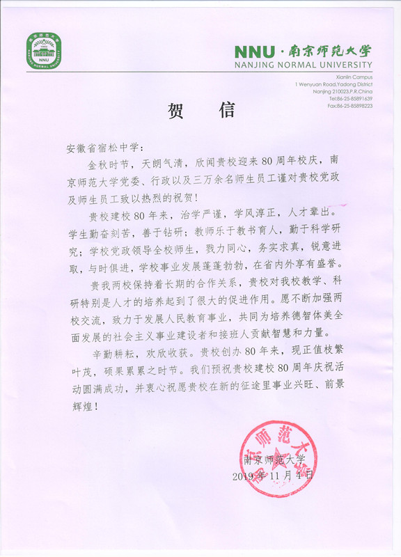 南京師范大學賀信