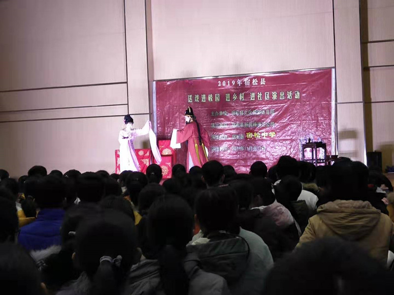 為弘揚(yáng)中華民族優(yōu)秀傳統(tǒng)文化,展現(xiàn)戲曲精華,讓更多的青少年感受傳統(tǒng)文化的韻味和魅力,提高青少年藝術(shù)品位和文化修養(yǎng),激發(fā)青少年對(duì)傳統(tǒng)戲曲文化的興趣和愛好,11月27日,上午8:00,宿松縣新黃梅演藝公司“戲曲進(jìn)校園活動(dòng)”走進(jìn)宿松中學(xué)為師生們帶來了一場(chǎng)戲曲盛宴。