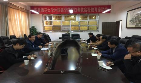 金秋十月鮮花艷,祖國誕辰笑開顏。2019年11月5號,安徽師范大學(xué)外國語學(xué)院黨委余國升書記、黨辦趙華杰老師、研究生院辦公室趙鵬老師一行蒞臨宿松中學(xué)進行調(diào)研指導(dǎo)活動。我校胡為群副校長、教務(wù)處余達懷主任、外語組張紅梅組長及九姑中學(xué)等中小學(xué)老師代表參加了座談會。