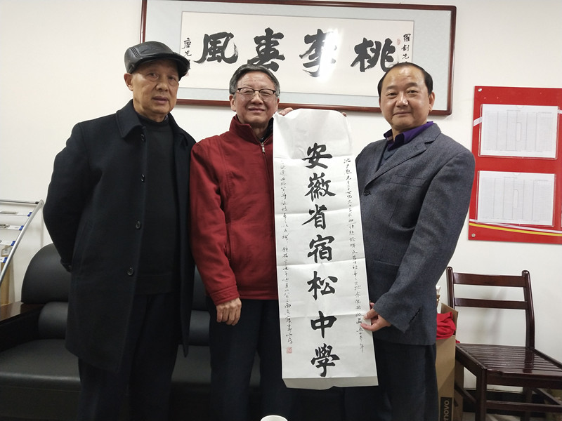 11月29日,在宿松中學慶祝建校80周年大會召開前夕,原南京財經大學中文系教授、67屆校友石鐘揚專程從南京趕到宿松中學向母校捐贈 “安徽省宿松中學”校牌。