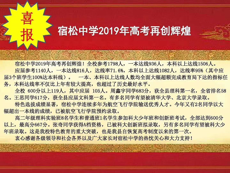 宿松中學(xué)2019年高考喜報(bào)