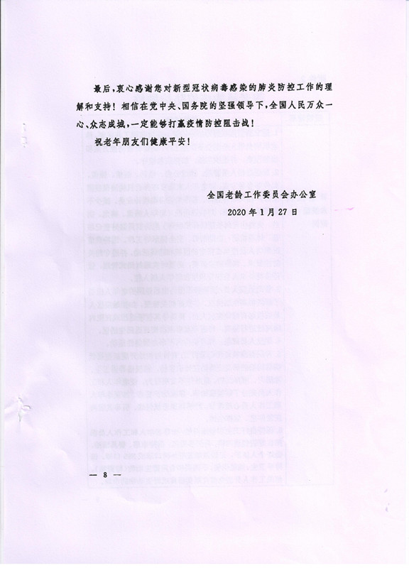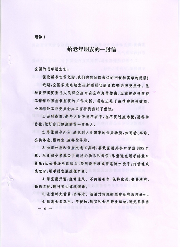 轉發全國老齡工作委員會辦公室《給老年朋友的一封信》