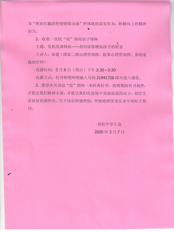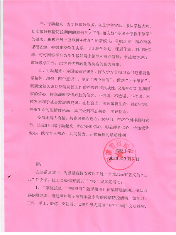宿松中學“抗擊疫情·巾幗擔當”三八婦女節活動倡議書