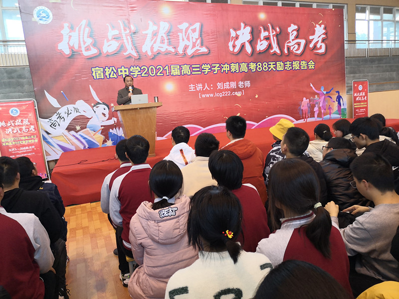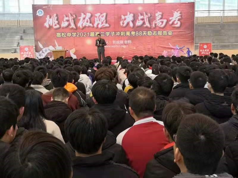 在備戰高考僅有88天之際,為激發學生強烈的學習欲望,堅定學生高考必勝的信念,同時也為了挖掘高三學生的學習潛能,優化備考情緒,讓每一位學子可以以最好的心態迎接最后的高考沖刺,3月11日下午,我校特邀全國著名青年勵志演說家劉成剛老師在校體育館為高三學生作了一場以“挑戰極限,決戰高考”為主題的勵志演講。