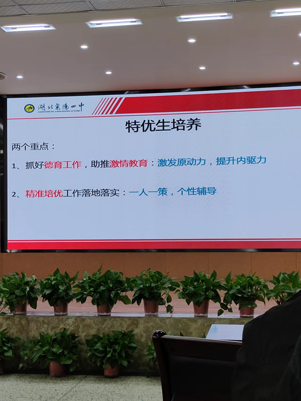 參觀結束后,全體成員聽取了專題講座,講座由2023屆高三年級主任蘇挺主講。蘇主任先從年級小組團隊、班主任團隊、學生管理、教學管理等四個方面介紹了襄陽四中在年級管理上的思路和做法,再從德育和精準培優兩個方面分享了襄陽四中在特優生培養工作上的先進經驗。蘇主任的講座內容詳盡細致,分享了一系列實操性極強的方案與制度,干貨滿滿。全體成員全方位感受到了襄陽四中分秒必爭的學習氛圍、嚴謹踏實的工作作風、科學高效的備考策略、精準細致的管理制度、浸潤人心的德育工作、追求卓越的文化內涵和多元競放的教育理念。