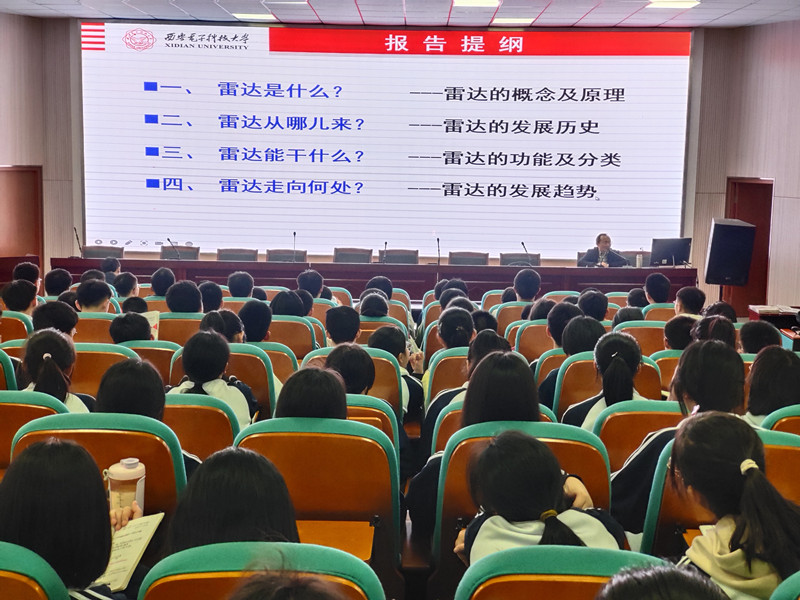 講座中,陳教授用深入淺出的語言向同學們介紹了雷達的概念及原理、發(fā)展歷史、功能及分類、發(fā)展趨勢;同時結合西安電子科技大學的招生情況,為同學們未來填報高考志愿提出建議;最后,陳教授還向大家分享了自己的求學經歷,勉勵宿中的學弟學妹們努力學習,找準目標,靠知識改變命運。