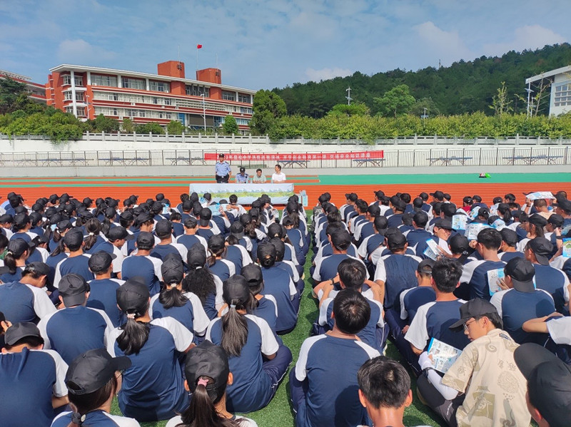 孚玉派出所的警察同志們為學生發放禁毒宣傳手冊,并從防止校園欺凌、防止電信詐騙、防止溺水、防范毒品等方面進行了重點宣講。