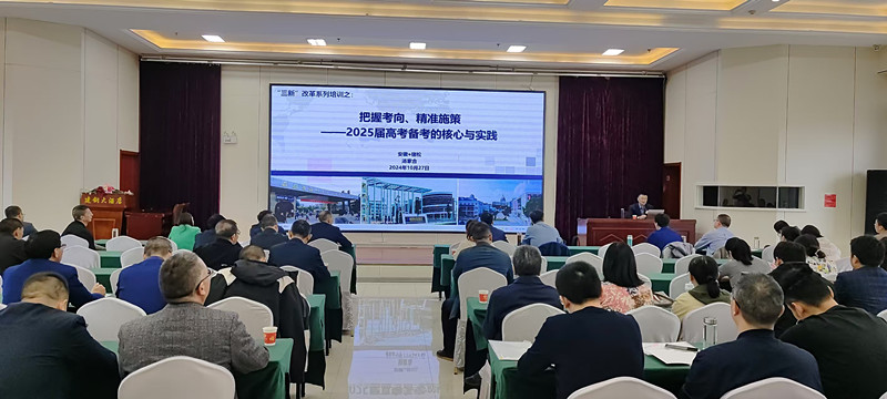 10月27日上午,高考備考專家湯家合校長(zhǎng)作了《把握考向,精準(zhǔn)施策——2025屆高考備考的核心與實(shí)踐》的報(bào)告。湯校長(zhǎng)結(jié)合自己的工作、教學(xué)、研究與實(shí)踐經(jīng)歷,從“高考備考的核心——把握高考命題導(dǎo)向”和“高考備考的實(shí)踐——扎實(shí)推進(jìn)全面?zhèn)淇肌眱蓚(gè)維度,從“學(xué)生發(fā)展核心素養(yǎng)體系的研究制訂”、“課程方案和課程標(biāo)準(zhǔn)的修訂”、“高中教材的編寫、修訂”、“學(xué)科教學(xué)育人功能的改進(jìn)”、“考試招生和評(píng)價(jià)的育人導(dǎo)向”五個(gè)方面簡(jiǎn)明介紹了由新課程走向新教學(xué)、由新教學(xué)走向新高考的逐級(jí)轉(zhuǎn)化過(guò)程,又通過(guò)具體的案例分析揭示了新高考命題的四個(gè)轉(zhuǎn)向和四個(gè)特征,解答了如何深度開(kāi)展有效的高三復(fù)習(xí)課,實(shí)現(xiàn)有結(jié)構(gòu)的教學(xué)、有目標(biāo)的教學(xué)、有深度的教學(xué)的問(wèn)題,具有極高的參考價(jià)值。