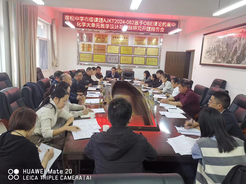 細雨園林潤,初冬景亦佳,專家齊聚此,精研啟思之。為進一步發揮課題在教育科研工作中的引領作用,提升我校教師的教育科研能力,助力學校高質量內涵發展, 11月 14 日下午,由宿松中學朱麗君和尹健老師主持的安徽省安慶市教育科學規劃2024年立項課題《基于OBE理論的高中化學大單元教學設計與實踐研究》(課題立項編號:AJKT2024-082)開題會議在宿松中學辦公樓四樓會議室進行。宿松縣教育局教研室周少華主任、朱才德主任、楊程鵬主任、朱旭南主任等領導蒞臨本次開題報告會。參加課題開題會的還有宿松中學副校長張松林、主任王金旺,課題主持人及課題組相關成員參加。會議由副校長張松林主持。