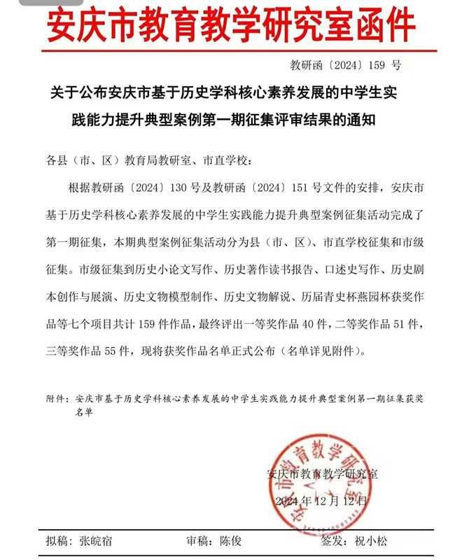 宿松中學(xué)學(xué)生榮獲歷史論文一等獎(jiǎng)