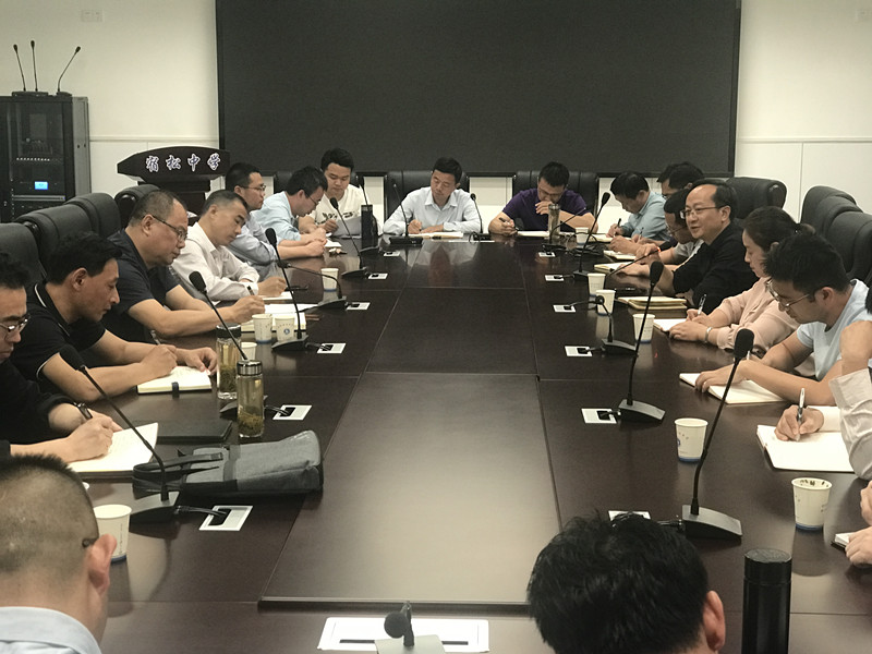 5 月 14 日晚,安慶市教體局副局長陳黨生蒞臨宿松中學,對我校新高考復習備考工作進行調研。市教體局基教科科長甘偉,縣教育局黨委書記、局長賀桂華,縣教育局黨委委員鄭振家等陪同調研。此次調研以座談會的形式進行,宿松中學校長胡為群,副校長石雅游、徐衛華、張松林,黨總支委員張淑珍,高三年級部管理人員及部分教師代表參加了座談會。