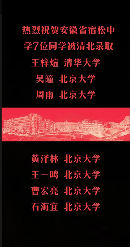 喜報(bào) | 熱烈祝賀宿松中學(xué)7名學(xué)生被清北錄取