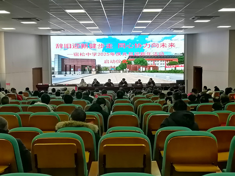 1月1日上午9點,宿松中學全體教職工齊聚圖書館二樓報告廳,以一場充滿活力的健步走活動,迎接新年的到來。本次活動以“辭舊迎新健步走,同心協力向未來”為主題,吸引了全校教職工的熱情參與。