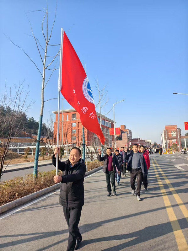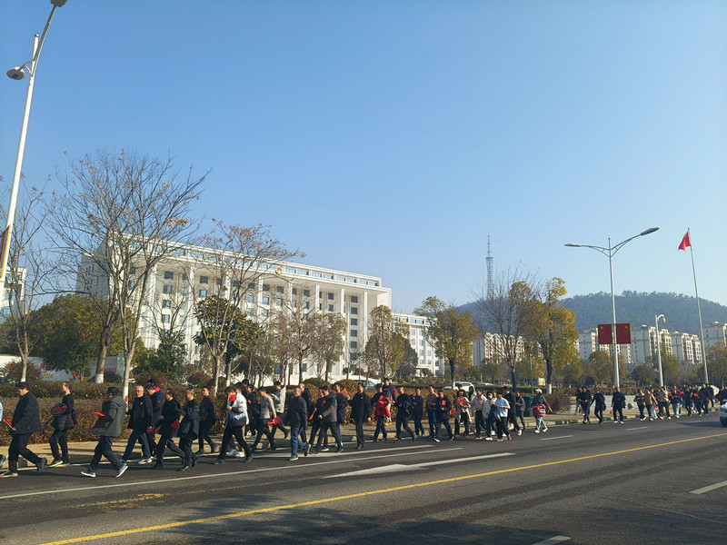 自覺整理好隊伍后,教職工們從學校東門出發,沿著桐梓路、將軍山路等路段穩步前行。一路上,大家精神抖擻,步伐矯健,歡聲笑語不斷,形成了一道亮麗的風景線。隊伍行進有序,展現了昂揚風貌。