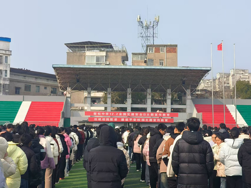 2月24日,宿松中學全體學生齊聚田徑運動場,參加新學期第一次升旗儀式。