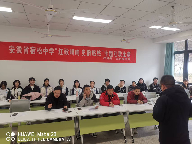 為傳承紅色文化,厚植家國情懷,2025年3月16日下午,由宿松中學校團委主辦、茲韻春秋社承辦的“紅歌唱響 史韻悠悠”紅歌比賽在綜合樓3樓歷史集體備課室隆重舉行;顒佑蓺v史組協(xié)辦,吸引了全校學生積極參與,他們以歌聲禮贊時代,用旋律致敬歷史。