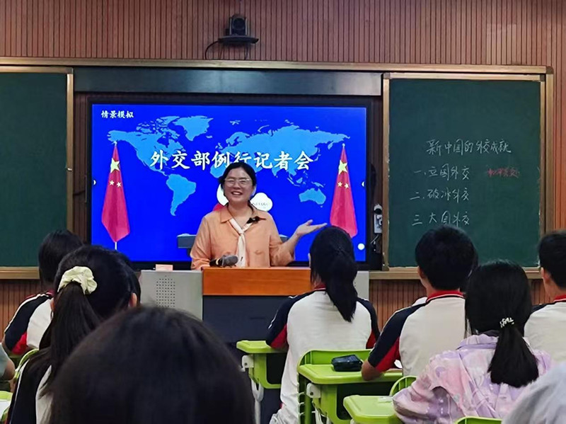 活動分為課例展示與研討交流兩部分。匯口初中朱海霞老師執教政治課《尋熠熠“姓”光,品中華文化》,以游戲、視頻等創新形式,融合歷史知識開展情境教學,生動落實大單元教學理念;龍山學校謝小蕓老師的歷史課《熊貓外交記——新中國的外交成就》,運用情境教學、角色扮演,模擬外交官答記者問環節極具創意,實現政史知識深度融合。